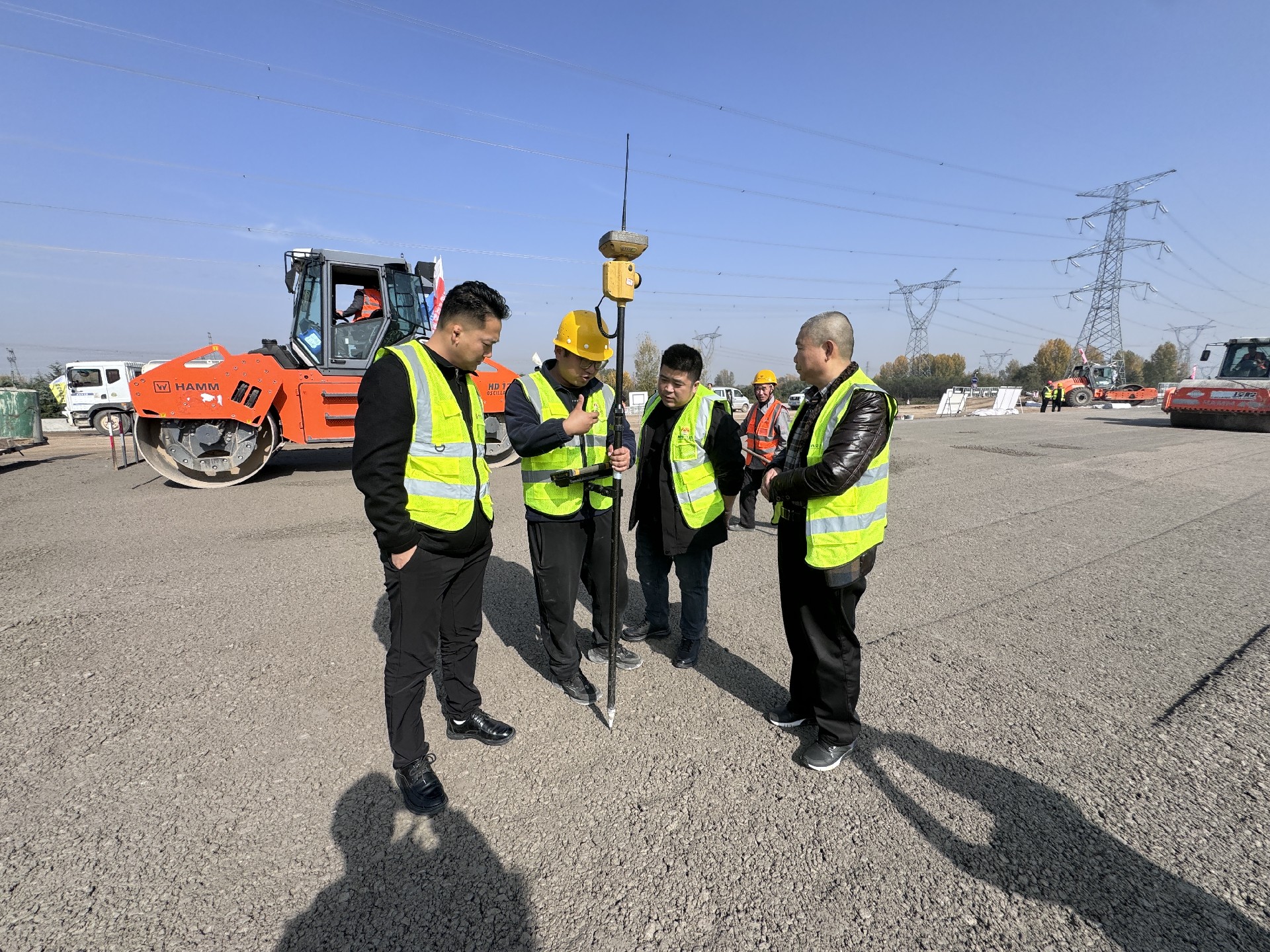 該系統(tǒng)創(chuàng)新性地融合GNSS RTK平面定位與LaserZone域激光高程控制技術(shù),兼具精準性與實用性。盛康普技術(shù)團隊通過架設(shè)域激光發(fā)射器,在項目現(xiàn)場形成“激光墻”,實現(xiàn)高程毫米級精度控制。同時,經(jīng)mmGPS流動站檢測設(shè)備實地檢測,已攤鋪面與設(shè)計數(shù)據(jù)偏差穩(wěn)定在毫米級,平整度符合高等級路面規(guī)范。